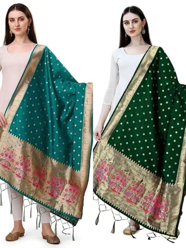 Fancy Rama-Dark Green Banarasi Silk Dupatta Combo